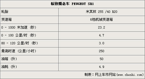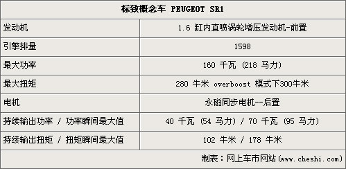 根据我们得到的第一手资料表明,标致的SR1概念车采用标致与宝马合作的全新1.6T引擎,技术上实现了燃油直喷、涡轮增压以及超低的涡轮增压器介入转速。这使得该车在1.6升的排量级别上能够得以拥有160千瓦的最大功率,在“超级启动”模式下,该车的最大扭矩能够从280牛米暴增至300牛米。