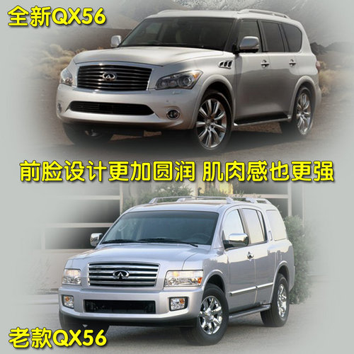 新款QX56外观方面,厚实的引擎舱,具有力量感的镀铬进气格栅和翼子板透气孔都在暗示着这款新车强大的动力系统。从整体设计上讲,只有林肯领航员能有如此的气势。但从侧身上来看,新QX56较老款更为圆润,体现出了英菲尼迪一贯的优雅感。