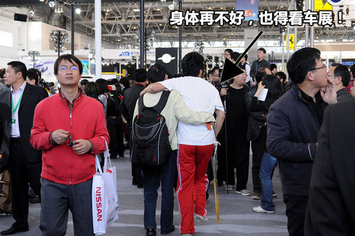 车展向来人多,本届也不例外,不过在场馆中,我遇到一位拄着拐杖来参观的,特别注明是当天为媒体日,这位大哥肯定不是媒体,虽然他这种热情我们很欣赏,但展馆对于票证的控制实在是不能让人满意。