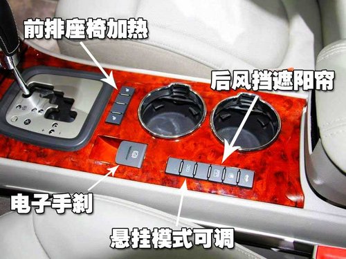 在换挡杆后部的控制区应该说是瑞麒G6前排的亮点所在,首先电子手刹出现在G6上,座椅加热这一冬天的贴心装备也在这个位置,除此之外,瑞麒G6还带有悬架调节控制,有三种模式供给驾驶员选择,同时商务车装备的后窗遮阳帘也是标配。