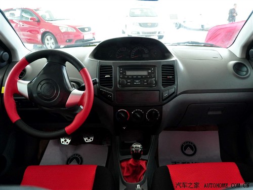 内饰在延续了普通版金鹰的同时,又进行了一些小的改动和创新,最明显的变化莫过于红黑相间的新造型方向盘和运动风格明显的座椅,另外,挡把遮挡处的颜色也改为红色的皮革材料,铝合金踏板也有红色元素装点。其它方面依然维持了普通版金鹰的造型,中置仪表今天看来已没有任何亮点可言,整体的功能和配置还是讲求实用为主。