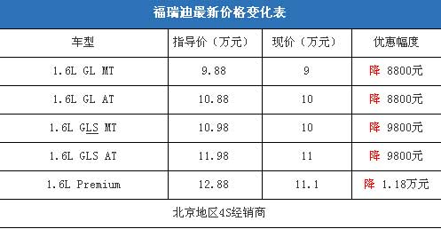 近日,编辑从北京地区东风悦达起亚4S经销商处了解到,福瑞迪1.6L车型的现车充足,目前购车最高可以优惠1.1万元,性价比很不错。据经销商透露,消费者要想以这个价格提车,需要在店内做购车一条龙服务,车辆商业险可以打9折。