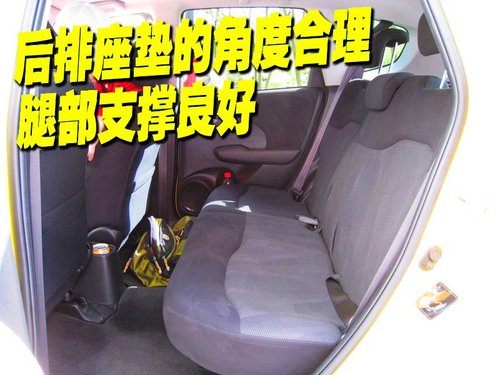 新飞度作为一款紧凑型家用轿车,但其车内空间的优势还是比价明显。前排驾乘空间还是十分宽裕,较高的头顶空间让身材高大的驾驶员也不会感觉局促,座垫较长,能给腿部良好的支撑。同时新飞度整车座椅均采用织物材料,坐垫和靠背的填充物比较厚实,触摸感觉不错,而且透气性很好。