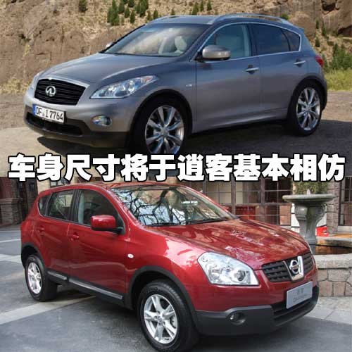 由于英菲尼迪DX可能采用了与逍客相同的技术平台,因此这两款车的车身尺寸也不会有太大的出入。在动力系统方面,新款英菲尼迪DX紧凑型SUV将会采用直列四缸与V6的发动机组成。到目前为止,关于英菲尼迪DX的信息还不是很多,网上车市也将继续关注这款新车,请您关注我们的以后的报道。