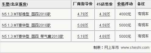 夏利车型在国内的销量一直都处于很平稳的高度,超高的性价比成就了夏利车型出色的认可度。天津一汽夏利与去年年底推出了全新夏利N5车型,在夏利其他车型光环的照耀下,N5同样交出了一份很出色的答卷。近期,网上车市走访了天津一汽夏利北京地区4S店,了解到夏利N5最新的市场信息,具体信息请参考下表:
