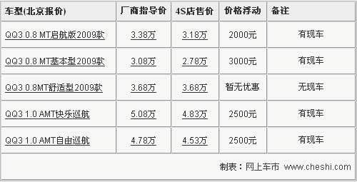 据奇瑞汽车4S店销售人员介绍,目前奇瑞QQ30.8排量的三款车型只有舒适版车型无现车,基本型和启航版车型分别有3000元和2000元的价格优惠,1.0自动档车型也有2500元的现金优惠。虽然降价幅度没有前一阵子大,但还有额外的惊喜,到店购车在原有现金优惠的基础上还可以赠送价值1000元的装饰。