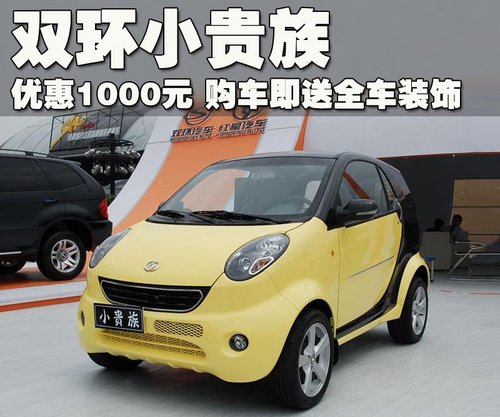 据双环汽车经销商销售人员介绍,目前双环小贵族车型购车直降1000元,另外购车即送全车装饰,店内全系车型现车均很充足,感兴趣的朋友可以到店试驾看车。