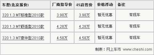 据力帆汽车经销商销售人员介绍,目前2010款320北京地区经销商库存都比较充足,由于售价很低,引得很多消费者关注。全系车型目前仍无现金优惠,但是到店购车可获赠部分装饰。另外,在其他品牌车型中很少见的一点还有力帆320车型5年10万公里的超长质保保障。