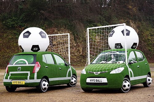 2010年南非世界杯将在6月拉开大幕,现代汽车作为世界杯赞助商之一,专为世界杯打造了两款融合了足球元素的形象车,这款形象车以现代i系列家族里辈分最小的成员i10为基础打造的。