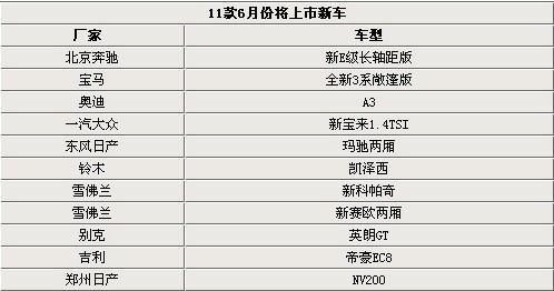 时间总是过得飞快的,似乎只有一瞬间便将到年中的6月份。而每每新的月份即将与我们相约时,我们都不会忘记将会上市的新车型。我们悉数了6月将上市的新车,发现热门的新E级长轴距版、英朗GT、新宝来1.4TSI等11款比较热门的车型将会出现在上市的列表中,而我们最关注的则是它们的整体情况及售价,到底会是怎么样?我们会在本文中为您呈现。