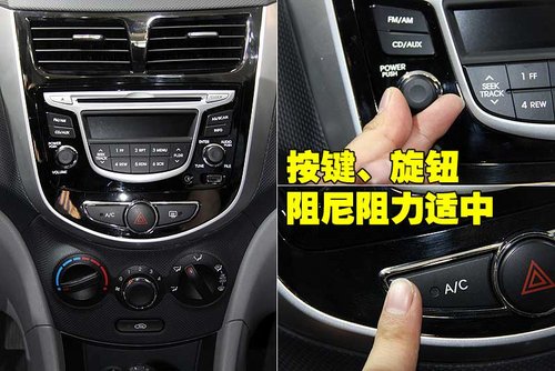 北京现代Verna的中控台面板采用类金属涂装,整体设计透露着运动时尚的气息,中控台的各按键、旋钮在使用中各项调节功能均可准确到位。