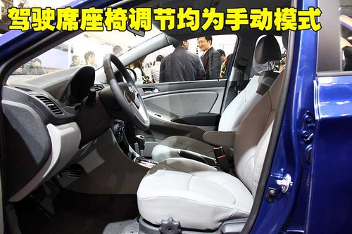 北京现代Verna整车均为真皮座椅,驾驶席座椅前后、高低、倾角与靠背角度为手动调节,腰靠调节也为手动,各旋钮四周做工细致、缝隙均匀。