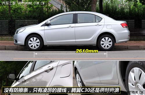 外观设计有些保守,这是我的个人评价,我相信也是厂家的目的。想想看,腾翼C30头一次进军新领域,想要站住脚,受大众欢迎才是捷径,什么个性,夸张一概不要!对现在的外观定案我觉得非常不错!有一点点日系的风格,简练美观,车身上少许的硬线条又让肌肉划分清晰,不是很好么?