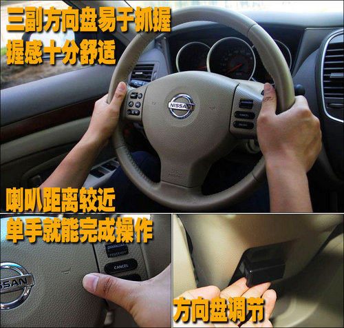 东风日产新轩逸为三幅真皮包裹方向盘,车主可以根据习惯来自行调节方向盘高度。方向盘集成了音量控制、蓝牙及定速巡航,在行驶中无需让手离开方向盘,就可轻松完成驾驶辅助(如定速巡航)与舒适(如音响系统、蓝牙等多功能控制系统)操作。
