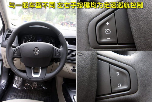 如同外观一样,法国人的设计永远是我们摸不透的,按一般车型来讲,方向盘中多会集成音响及定速巡航控制键,而新拉古那方向盘的左右手位置均为巡航按键。