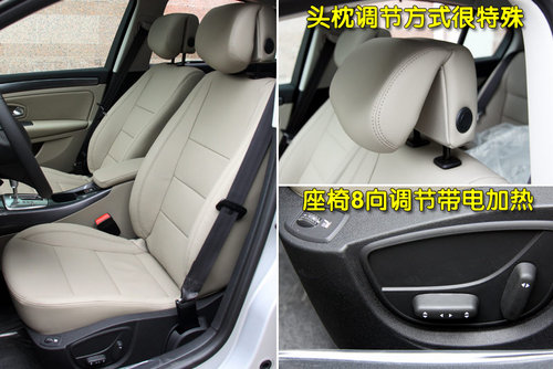 新拉古那的座椅为米色真皮材质,坐垫较为柔软,乘坐上也非常舒适,但是在侧向支撑力方面就会感到有些欠缺,另外腰部支撑的调节位于座椅内侧,在调节时我们也需要扭动身体来完成。而新拉古那的头枕设计是我最喜欢的,可以大范围调整前后位置,可以另驾乘更为舒适。