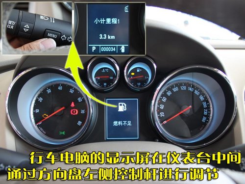 英朗GT的驾驶员信息系统与雪佛兰科鲁兹、英朗XT、别克新君威没有什么不同,从显示器部分到位于方向盘左侧控制杆的按钮部分,都完完全全是零件共用背景下的产物。