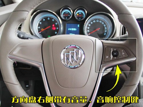 真皮缝制的方向盘在10点和14点的位置都设计了两个凸起,这种设计更多的出现在运动车型上,是为了能够让驾驶者更加易于操纵方向盘。在三辐方向盘的右侧是多媒体按钮,能够用来控制音响系统。