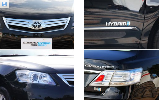 在外观上,凯美瑞混合动力版的整体外形比较圆润饱满,最直观的感受就是大气磅礴,凯美瑞混合动力车身长4.825m,宽1.82m,高1.474m,轴距为2.775m。整个前脸的设计显得十分动感和谐,“鸥翼”型的中网精美而富有现代时尚感,同时也保证了良好的空气动力性,回形的大灯的造型也有局部的调整,仿佛高原湖泊一样清澈与深邃熏蓝底的大灯设计十分新颖独特,在路上绝对能吸引眼球。尾部最大的变化就是与大灯相呼应的尾灯组件,也同样采用了天空蓝的点缀,同时采用了耗能更低使用寿命更长的LED光源,不仅光色更纯而且光感也更亮,最关键的是可以在更远的距离提醒后车司机注意减速,提高自身的被动安全性。在前车门下方车身,采用了比北美版更大的亚洲专用的“Hybrid”标志,告诉大家这是一枚其独有的环保荣誉勋章。
