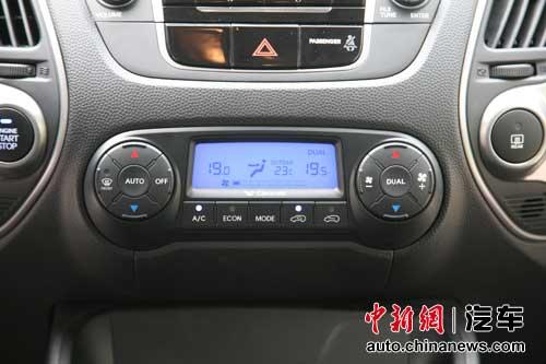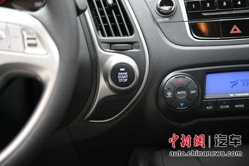 作为一辆20万元出头的车,该有的配置ix35差不多都有了——无钥匙启动、双区自动空调、倒车影像、双天窗、自动防眩目后视镜、自动头灯等等。无钥匙启动是ix35最大的亮点之一。除两款2.0新锐版外,其他几款ix35皆配有无钥匙进入和启动系统,这在很大程度上是区分一辆车档次的标志性配置。此外扶手箱里还备有钥匙插孔,一旦遥控钥匙电池耗尽导致无法通过无钥匙启动,只需将钥匙插进插孔,就可以启动汽车。我们在测试时做了个实验,在汽车启动后将钥匙拿出车外。此时仪表上会显示“Key out”,但是汽车不会自动熄火,也依旧可以驾驶,只是如果熄火后要再启动就不可能了。
