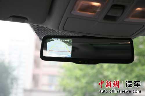 图注:这款车型上的自动防眩目后视镜上集成了倒车影像功能,对于SUV这样体型偏大的车型来说,这个功能无疑非常实用。在更高配置的车上,这一功能被集成到了中控上的汽车导航影音系统之中。