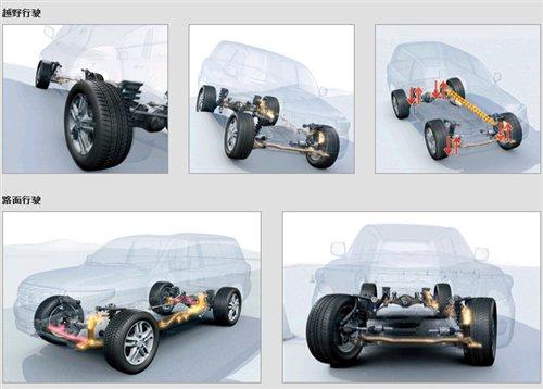 而在进入崎岖路况时,用于前后左右车轮悬挂受到挤压或者拉伸程度并不相同,此时液压油缸中平衡被打破,液体可以在回路中自由流动,此时前后稳定器不再发挥作用,而仅相当于悬挂连杆,从而赋予了悬挂更大的行程。