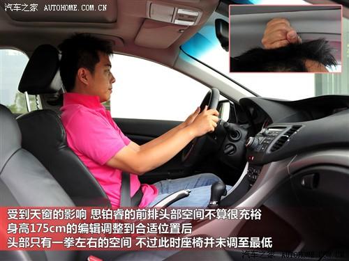 对于一款中型车来说,思铂睿前排的头部空间略显不足,而后排空间表现只能说是很一般,腿部空间有一拳多的距离还算勉强合格,不过头部仅有三指的水平确实不能让人满意,即便是主打运动的中型车,最基本的乘坐空间也应该保证。