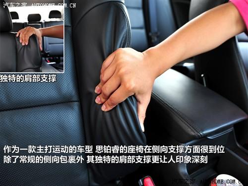思铂睿的真皮座椅进行了打孔处理,增加了座椅的透气性,也使座椅显得更高级。该座椅最大的特点是其丰富的侧向包裹能力,除了常规的腰部侧向支撑,思铂睿座椅独特的肩部支撑更让人印象深刻。