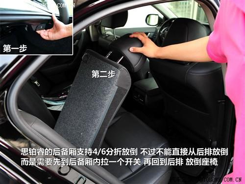 思铂睿的后备厢内部并不是很平整,有一个向下的凹陷,对实用性有一定影响。后排座椅的放倒方式也不够人性化,不能直接从后排放倒座椅。手套箱内的后备厢防盗开关有一定实用性,可以防止车辆在等红灯等情况时备厢内的物品被盗。