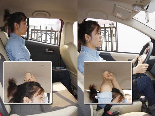 上图的空间展示者身高不超过170cm,我们可以很清楚的看到,她在车内的前排的座位上,奥拓给予她的空间还是很充足,而后排头部空间方面,对于她的身高来说,只能算是够用而已。