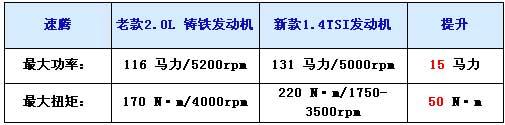 1.4TSI发动机最大功率130马力,并可以在1750-3500转的区间输出220牛米的扭矩。相比那款铸铁的2.0L发动机,在最大功率上提高了15马力,最大扭矩更是增加了50牛米。除了数据上的提高,1.4T版速腾的实际性能表现也非常优秀。