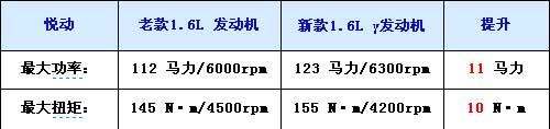发动机的改变是2010款悦动最新的变化,悦动换装了与福瑞迪相同的1.6升γ发动机,该款发动机采用CVVT可变气门正时技术,最大功率为123马力/6300rpm,最大扭矩为155牛米/4200rpm。相比老款发动机最大功率提高了11马力,最大扭矩也增大了10牛米。