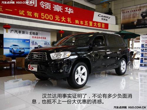 召回门之后,丰田全系产品都试图用降价来挽回颓势。您还别说,“优惠甩卖”这招对中国人还真管用——甭管之前有多少负面,汉兰达依然稳居销量榜第四。
