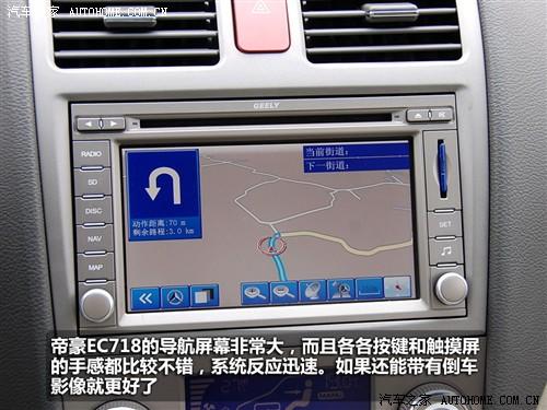 帝豪EC7尊贵型带有导航,6.5英寸的屏幕分辨率不错,没有粗糙的颗粒感,系统反应也比较快,并且支持SD卡扩展,为帝豪EC7增色不少,要知道尊贵型的售价不到10万元。