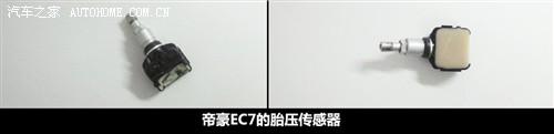尊贵型和豪华型带有直接式胎压监测系统,内置在轮胎内的胎压传感器实时监控轮胎的压力情况,发现异常时系统会报警提醒驾驶员及时检查轮胎,防止发生恶性事故,不过同为直接式胎压监测,帝豪EC7并不能显示异常轮胎的位置,这点是需要改进的。