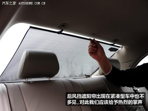 尊贵版后风挡带手动遮阳帘,实话讲,这个配置的成本其实并不是高,但是有和没有在心理上给人的感觉就截然不同,在紧凑型车中遮阳帘的配备的确是罕见;在烈日下,空调可以降低车内的温度,但是玻璃对强烈的光线没有任何的阻挡作用,拉上遮阳帘即可削弱光线对后排乘客的照射。