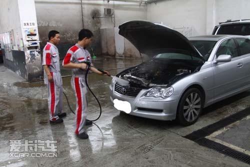 这里再提醒一下各位,在用高压水枪清洗水箱冷凝器外罩时,切忌不要冲到发动机上,因为现在的汽车均采用了电子控制燃油喷射系统,发动机舱里面装有发动机电脑、变速箱电脑、点火电脑及各种传感器和执行器。如果用高压水枪冲洗的话,就有可能出现短路的现象,很可能会损坏发动机电脑。