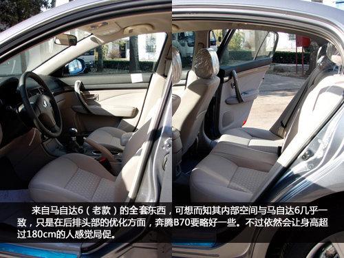 空间不用多说,奔腾的内部空间设计很马6,只是不同的地方在于奔腾B70的后排头部空间的优化做的要比老款马自达6好上一些,而其它帝反几乎完全一致。