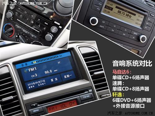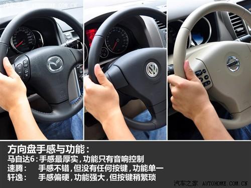 总的来说,作为顶配车型的轩逸具有的舒适性配置更高,特别是带有倒车影像和DVD播放的中控台彩色大屏显得很有吸引力,而无匙启动也十分上档次。速腾的配置也要比马自达6更丰富一些,特别是安全配置一直是他的强项,而尺寸更大、级别更高的马自达6在这方面的确没有优势,不过话说回来,马自达6的舒适性配置对于日常驾驶来说已经完全足够。