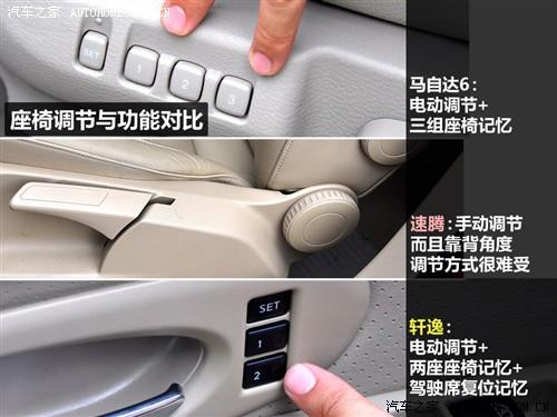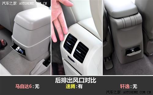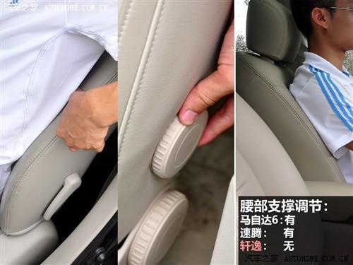 在这三款车中,中型车的马自达6具有最宽大的座椅和三组座椅记忆,只是他的天窗面积实在有点小;速腾的的配置影响了便利性,但却是三款车中唯一有后排出风口的;轩逸的座椅就像家里的沙发一些,而且在开门的瞬间还可以自动后撤来方便上车,但几乎没什么包裹性可言,不利于高速行驶。