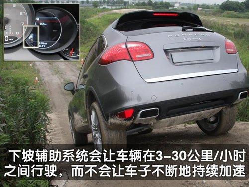 而上坡或是下坡过程中车辆也会放置突然松开油门并且未及时采取制动而造成的“溜车”现象。在坡道上重新开启车辆只需要缓慢的去踩下油门踏板,这么简单而已。在下坡的时候新卡宴的下坡辅助系统可以让车速保持在3-30公里之间,当车辆的向下倾斜角度达到12°以上系统就开始工作,此时驾驶员就算将油门踩到底,并且不去管制动踏板车速也不会超过30公里每小时。