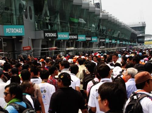 维修通道开放时大量观众涌入,可见SUPER GT的火爆场面↑