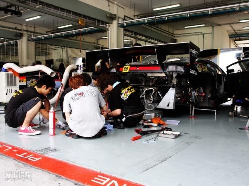 其实SUPER GT在比赛之前,大会是可以将维修通道开放30分钟的,这时会有大量观众涌入。而每个车队都将在门前拉起警戒线,禁止所有观众进入,但这些车队都会在适当的时候发放些纪念品或是请出各自的车模与观众进行互动。