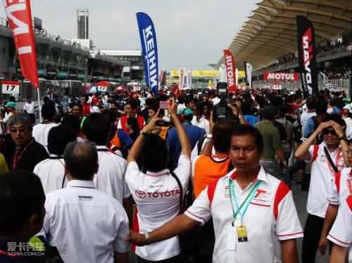 正赛开始前,所有赛车和模特都将走上赛道,此时会对赛会嘉宾开放赛道15分钟,以供大家与自己喜爱的车手和模特们拍照。只是在这短短的15分钟内,赛道上足以变得水泄不通,可见SUPER GT的火爆程度。