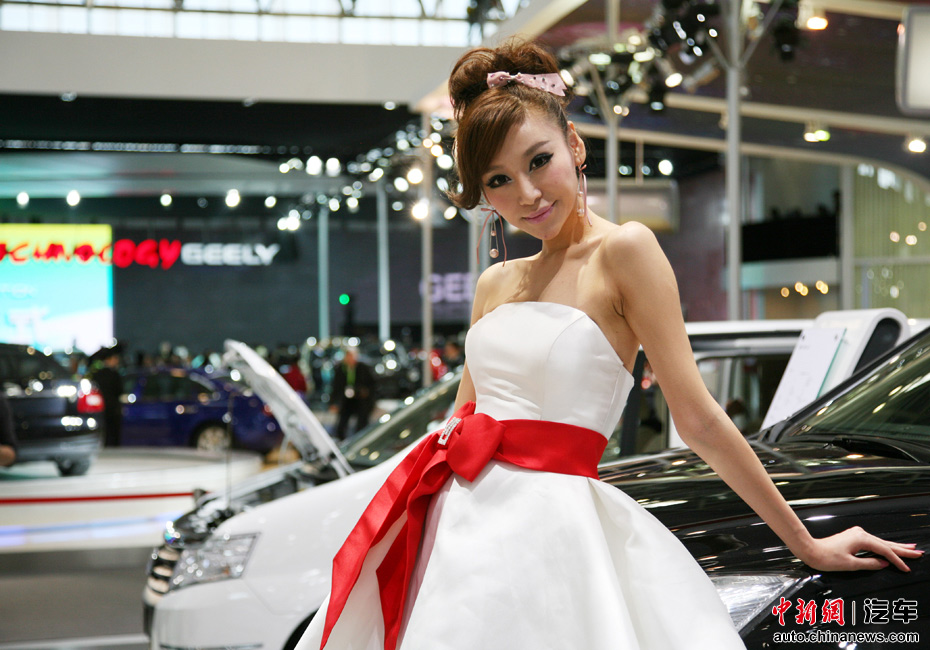北京车展群芳竞艳:靓模一袭白裙秀香肩