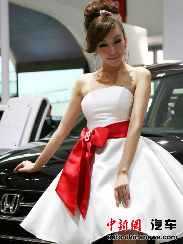北京车展群芳竞艳:靓模一袭白裙秀香肩