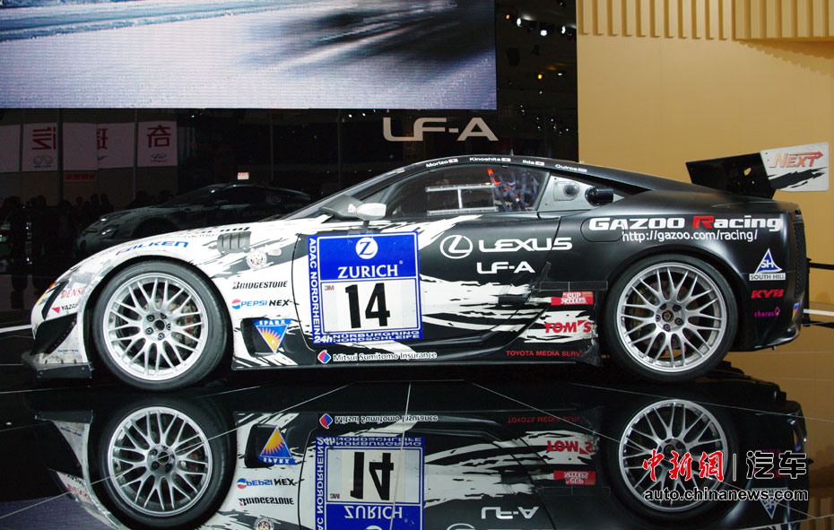 在人流如织的海外汽车巨头的展馆里,天价豪车成了当仁不让的最抢眼明星,相形之下即使再靓丽的车模也黯然失色。图为雷克萨斯LF-A