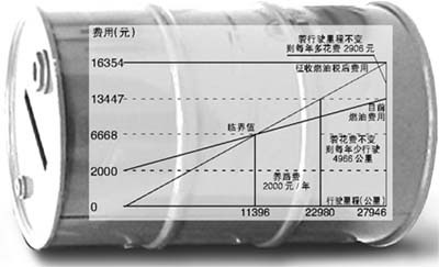 据新华信的调查,以紧凑型车为例,北京地区养路费用等一年约为2000元,93号汽油的价格为4.9元/L。假如燃油税税率为30%,则:如果车主改变用车行为,将年行驶里程控制在1.1396万公里以内,会减少费用支出。若按照目前的使用情况,保持行驶里程不变,开征燃油税后,车主将每年多花费2906元。若按目前支付费用情况,保持花费不变,则每年要少行驶4966公里。