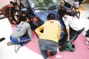 “只能用嘴唇接触,坚持时间最长者可以1元购买市场价7万的汽车。”这是某厂商昨日举行的“亲吻汽车大赛”规则之一。比赛从昨日中午12时许开始,截至晚11时30分,120名参赛者中还有39人在坚持。面对质疑声,主办方表示并“不想炒作”。