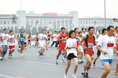 2007全日空北京国际马拉松专用车的交车仪式日前在国家体育总局训练局举行,东风本田汽车有限公司执行副总经理刘裕和将旗下CIVIC轿车的钥匙亲手交到了中国田协副主席王大卫的手中。